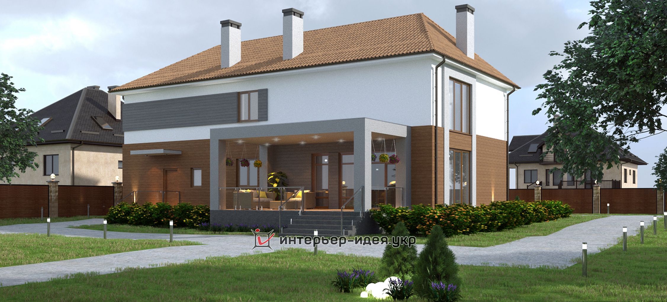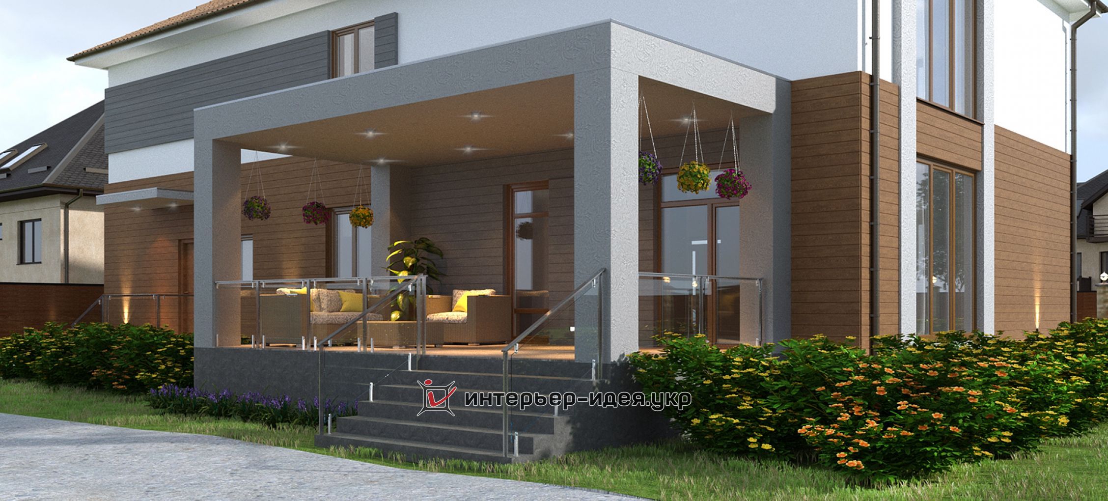 Отзыв дизайнера: Основной сложностью было наличие разногабаритных окон, упрощенной изначальной архитектуры самого дома, отсутствия различных выступов либо углублений в фасадной части.