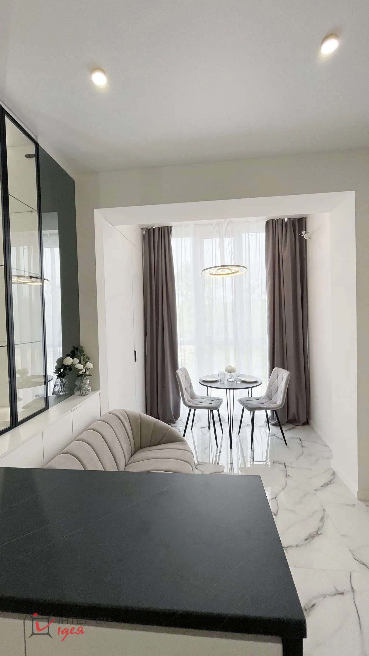 Mieszkanie położone jest nad jeziorem, a dzięki dużym oknom wypełnia je naturalne światło i rozpościera się z niego piękny widok. Ten projekt to doskonały przykład, że nawet w kompaktowej przestrzeni można stworzyć poczucie harmonii, stylu i komfortu.